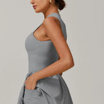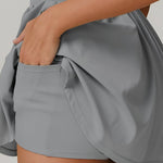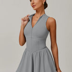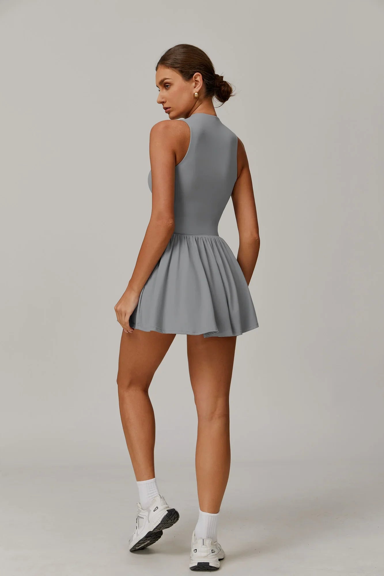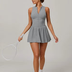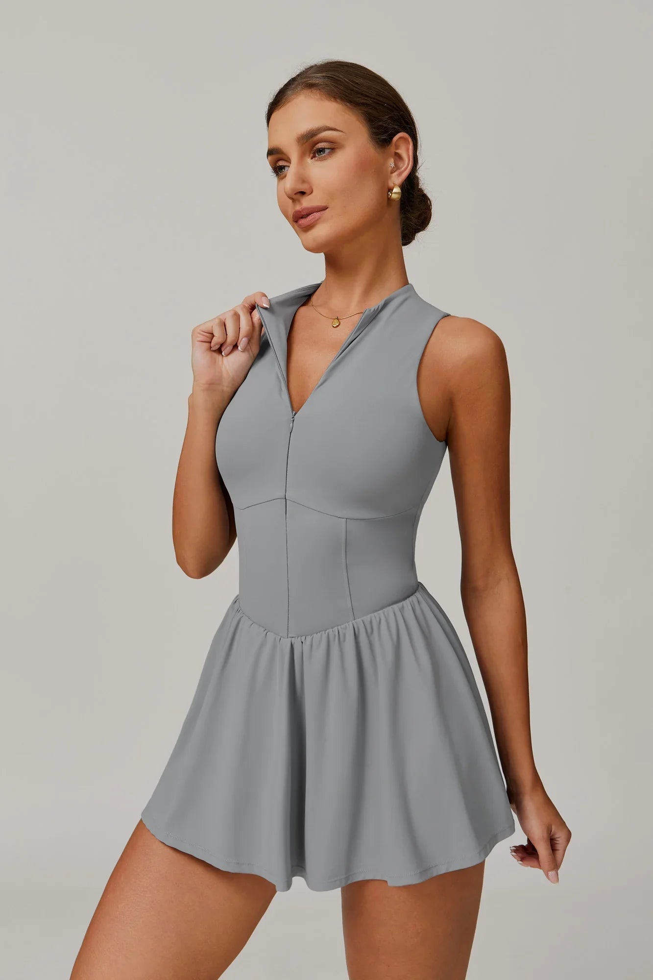 Sukienka COCOON z zamkiem do połowy, ściąganą talią i rozkloszowaną spódnicą z wbudowanymi szortami. Regulowany dekolt, oddychający materiał i krój, który sprawia, że wyglądasz świetnie bez wysiłku. Od asa na korcie po sobotni brunch — COCOON to jedna sukienka na wszystkie Twoje oblicza.