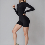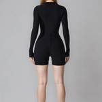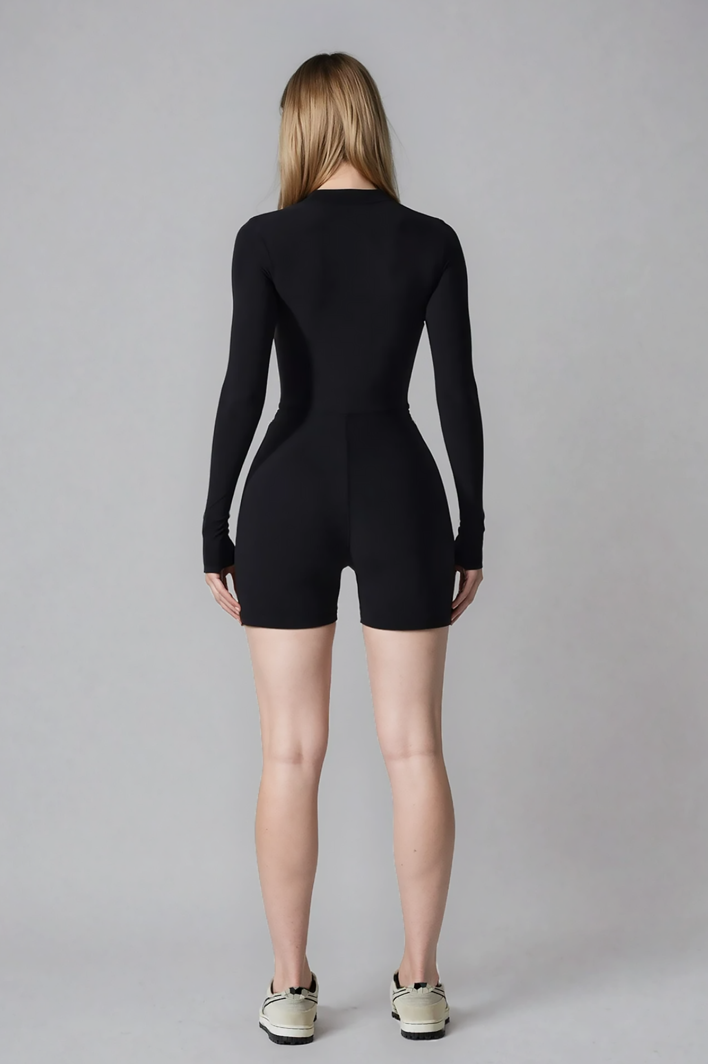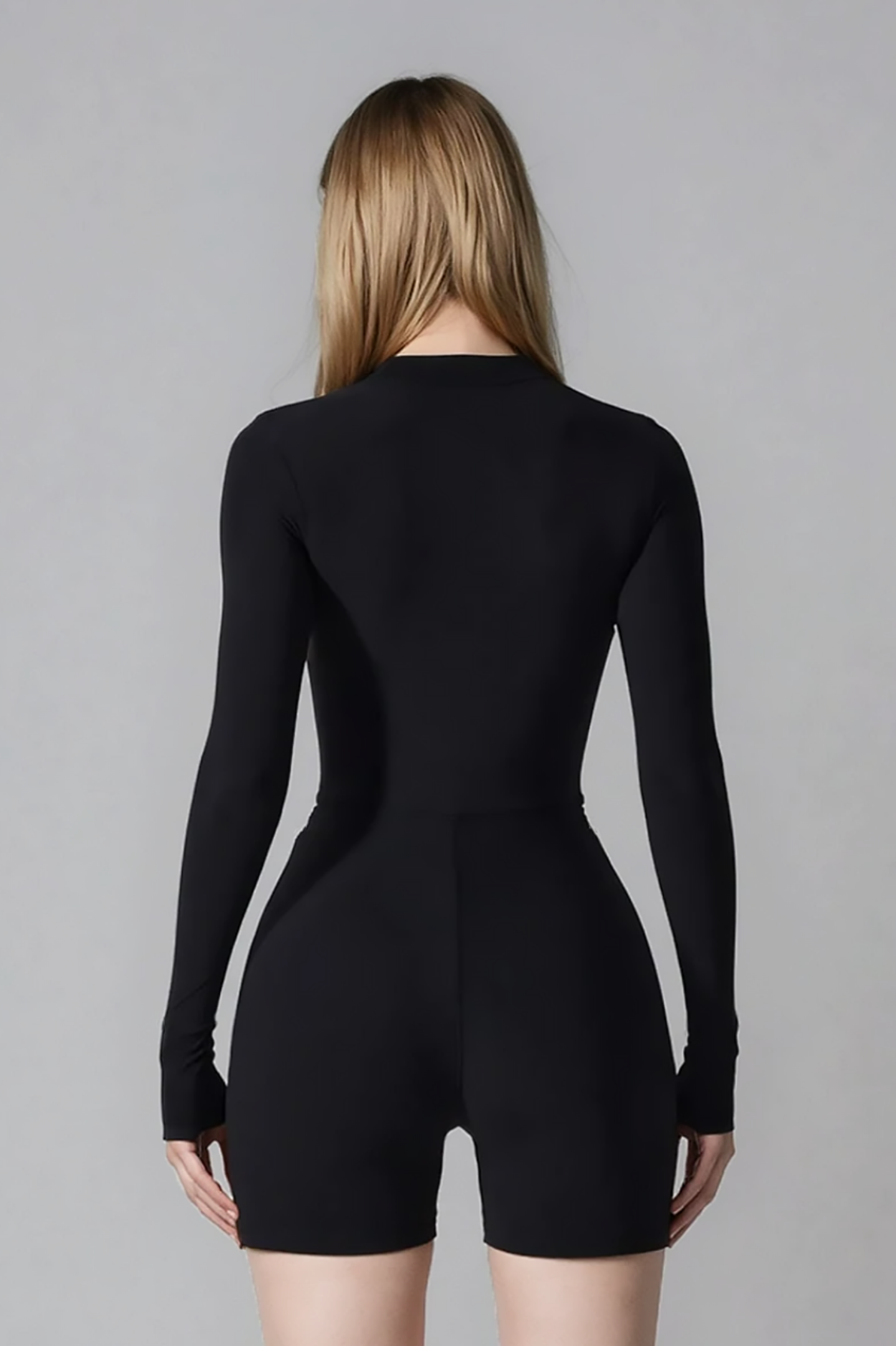 Romper STEADY z długim rękawem — bo najlepsze rzeczy w życiu nie wymagają komplikacji. Wysoki golf z zamkiem, przylegający krój i miękki materiał, który daje pełną swobodę ruchu. Załóż i zapomnij o reszcie. Trening, miasto, codzienny bieg — jesteś gotowa.