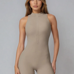 HUSH to romper, który łączy elegancję z gotowością na każdy ruch. Wysoki golf z zamkiem, marszczone detale na plecach i wyjmowane wkładki stanika. Zaprojektowany tak, żebyś mogła przejść od intensywnego treningu do spokojnego dnia bez przebrania. Bo dobra odzież sportowa nie kończy się na progu siłowni.