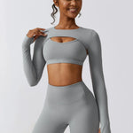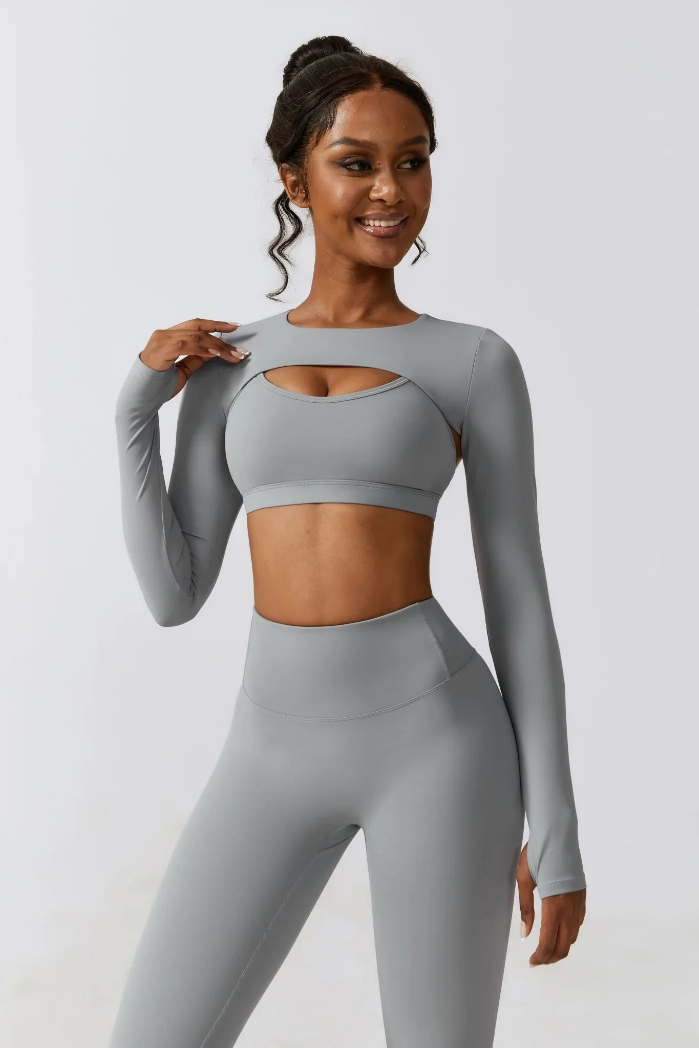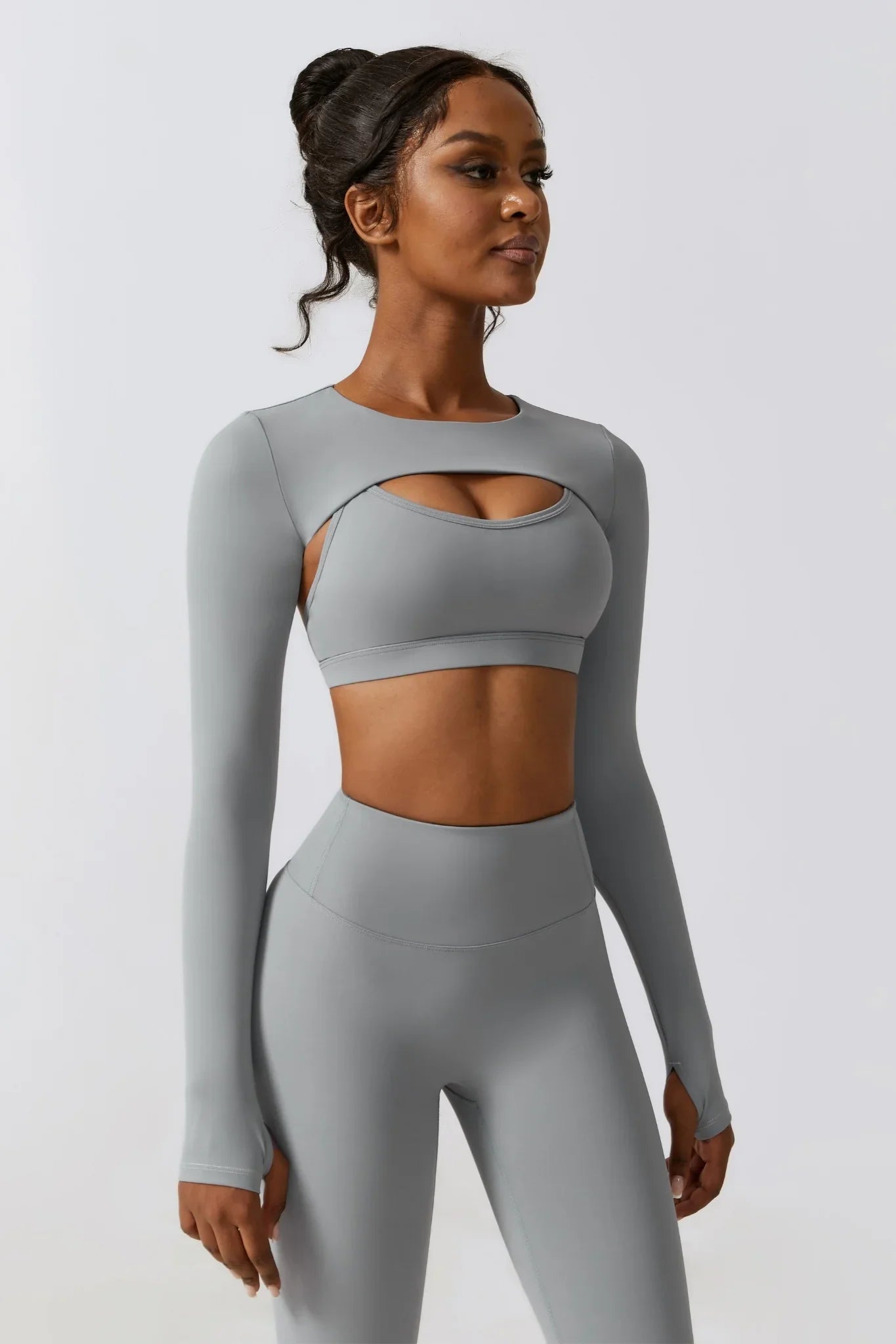 Narzutka FLOW z długim rękawem z otworami na kciuki — Twoja ulubiona warstwa na studio i chłodne poranki. Lekka, wygodna i tak łatwa do założenia, że stanie się Twoim automatycznym wyborem. Narzuć ją na ulubiony stanik sportowy i gotowe. Ciepło bez przegrzewania.