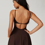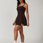 DUSK to mini sukienka z wbudowanymi szortami, odkrytymi plecami i regulowanym ramiączkiem. Luźny, swobodny krój i elastyczny materiał, który porusza się razem z Tobą. Od kortu po kawę, od treningu po spotkanie — DUSK łączy sportowy charakter z kobiecą lekkością.