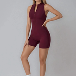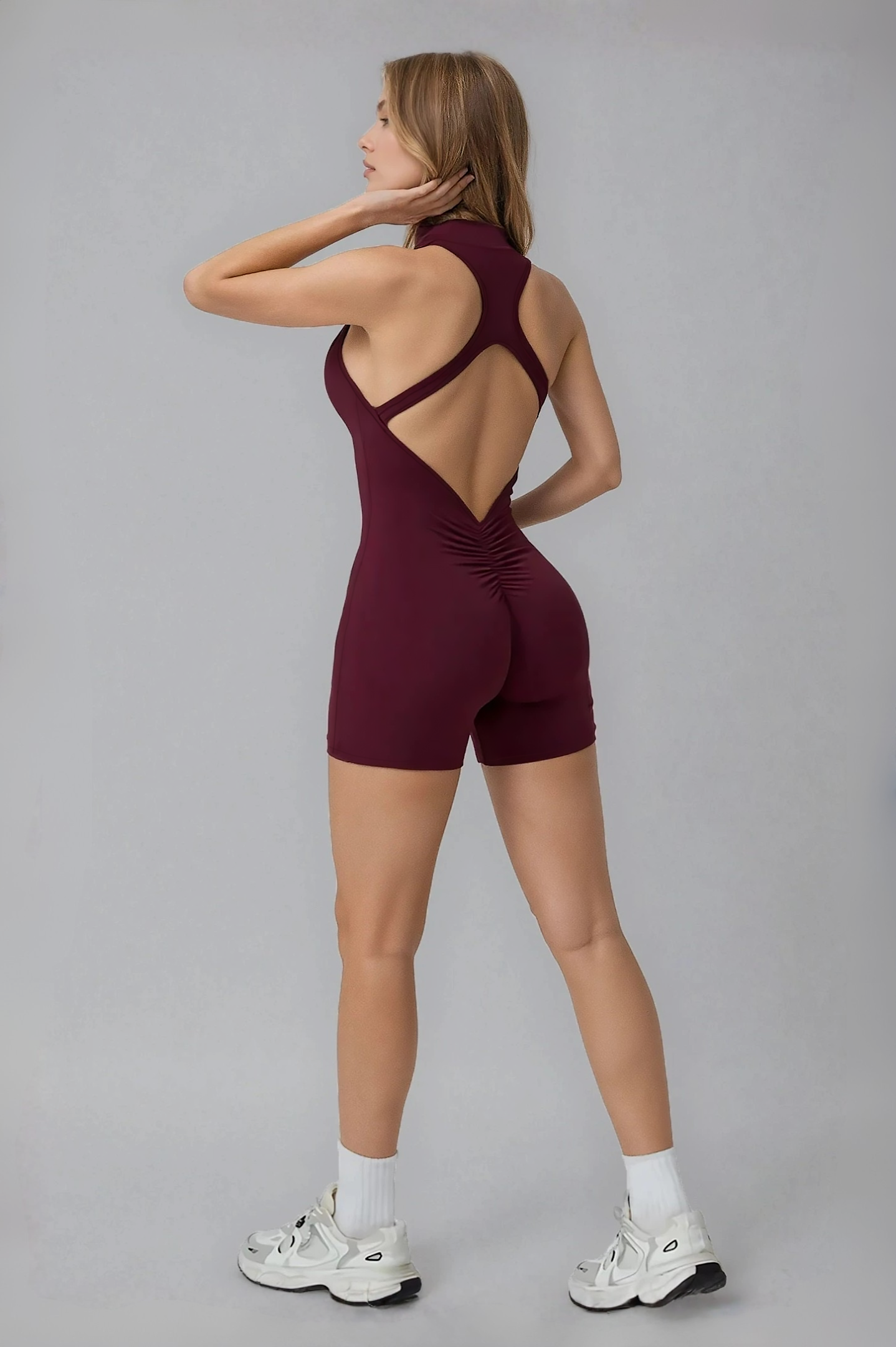HUSH to romper, który łączy elegancję z gotowością na każdy ruch. Wysoki golf z zamkiem, marszczone detale na plecach i wyjmowane wkładki stanika. Zaprojektowany tak, żebyś mogła przejść od intensywnego treningu do spokojnego dnia bez przebrania. Bo dobra odzież sportowa nie kończy się na progu siłowni.