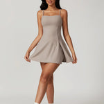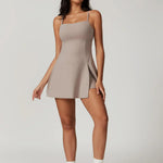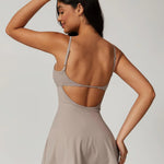 DUSK to mini sukienka z wbudowanymi szortami, odkrytymi plecami i regulowanym ramiączkiem. Luźny, swobodny krój i elastyczny materiał, który porusza się razem z Tobą. Od kortu po kawę, od treningu po spotkanie — DUSK łączy sportowy charakter z kobiecą lekkością.