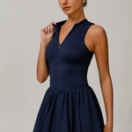 Sukienka COCOON z zamkiem do połowy, ściąganą talią i rozkloszowaną spódnicą z wbudowanymi szortami. Regulowany dekolt, oddychający materiał i krój, który sprawia, że wyglądasz świetnie bez wysiłku. Od asa na korcie po sobotni brunch — COCOON to jedna sukienka na wszystkie Twoje oblicza.