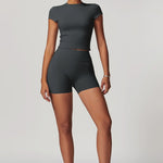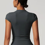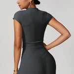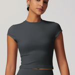 Crop Top NERVE z okrągłym dekoltem, delikatnymi krótkimi rękawkami i przycięciem na talii. Miękki, elastyczny materiał, który porusza się z Tobą — od porannej jogi po wieczorny relaks. Prosty krój, który dobrze wygląda. Bez wysiłku, bez nadmiaru. Po prostu NERVE.