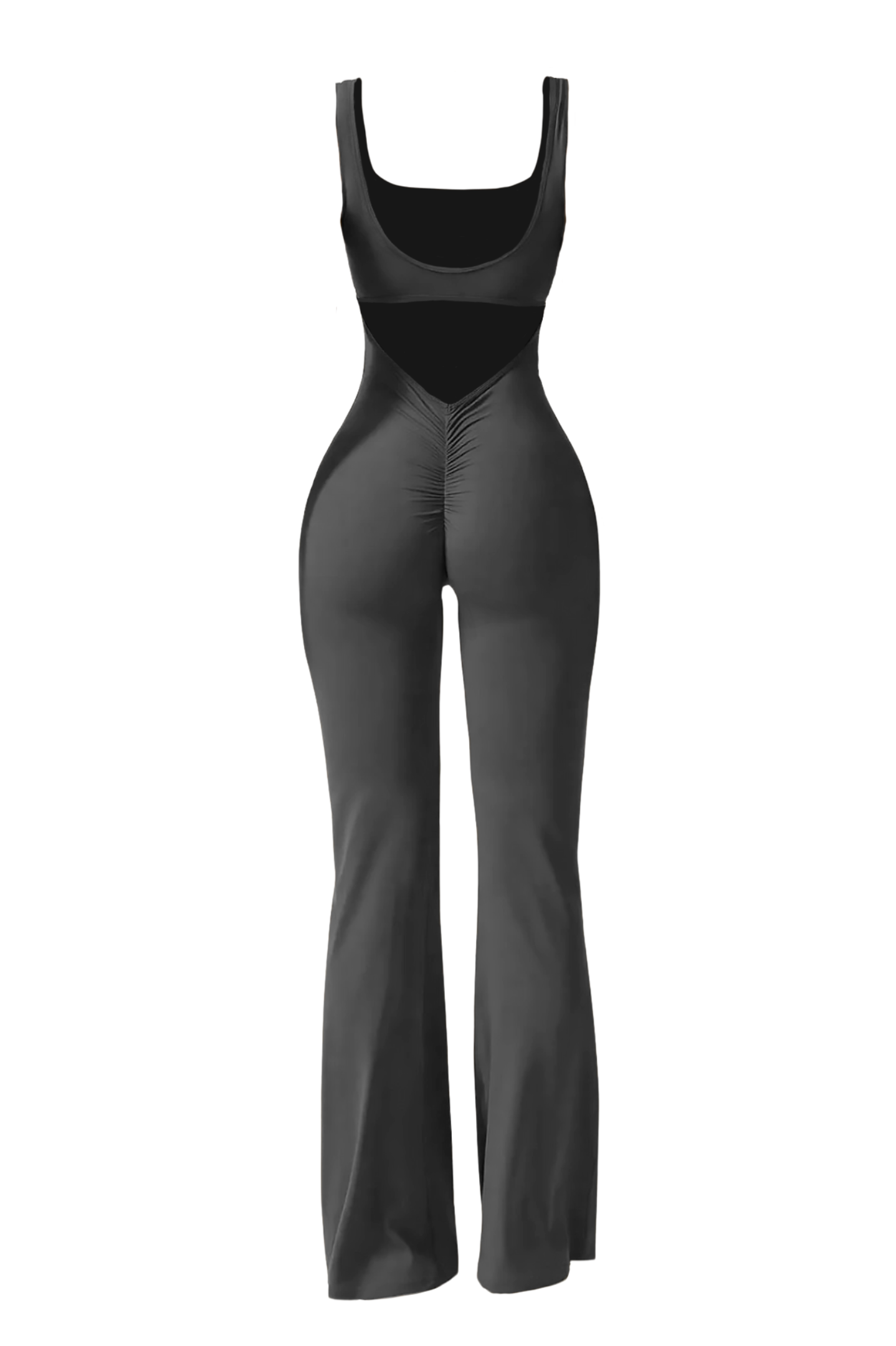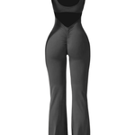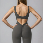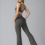STRIDE to kombinezon z rozkloszowanymi nogawkami i marszczonymi detalami na plecach, który wygląda równie dobrze na macie, co po treningu. Okrągły dekolt, wbudowany stanik z wyjmowanymi wkładkami i materiał, który modeluje sylwetkę — bez ściągania, bez ograniczania. Dla kobiet, które lubią mieć przestrzeń — w ruchu i w stylu.