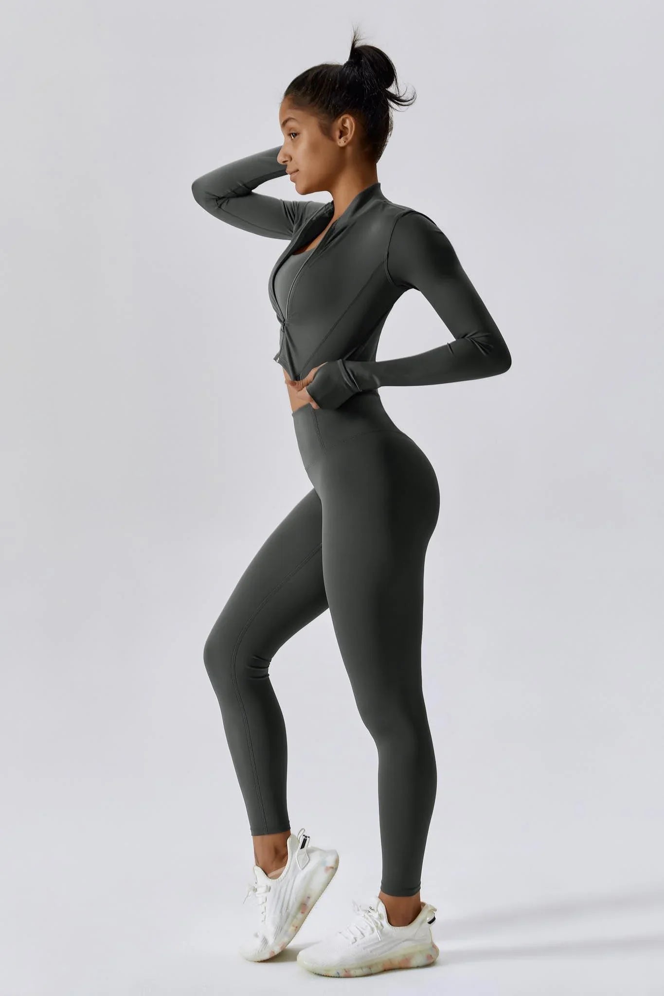 Legginsy FLOW to Twoje nowe codzienne legginsy — na matę, na siłownię i na kanapę. Wysoki stan, który nie opada. Materiał, który oddycha. Szew z tyłu i delikatne marszczenie, które modelują sylwetkę bez ściągania. Zero przezroczystości. Zero poprawiania. Pełna swoboda ruchu.