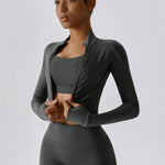 Bluza FLOW z zamkiem, modelującym krojem i długim rękawem z otworami na kciuki. Lekki materiał, który trzyma ciepło bez przegrzewania. Załóż ją po treningu, na drogę do studia albo do ulubionych legginsów na co dzień. Krój, który podkreśla talię i wygląda tak dobrze, że nie chcesz jej zdejmować.