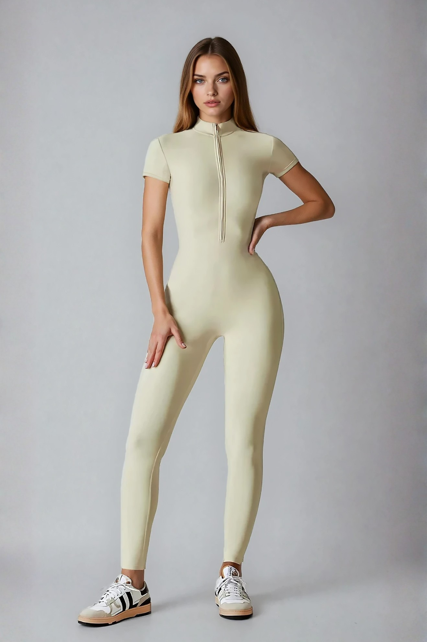 STEADY z krótkim rękawem — ten sam pewny krój, ta sama łatwość. Wysoki golf z zamkiem, przylegająca sylwetka i materiał, który nie ogranicza żadnego ruchu. Zakładasz jeden element i jesteś gotowa — na trening, na miasto, na wszystko pomiędzy. Prosty wybór dla kobiet, które nie lubią tracić czasu.