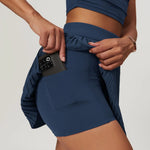 Spódnica SPRINT z plisami i wbudowanymi szortami — połączenie sportowego ducha z kobiecym krojem. Wysoki stan, oddychający materiał i design, który przenosi Cię z kortu na lunch bez przebrania. Funkcjonalna i kobieca. Na Twoich zasadach.