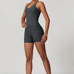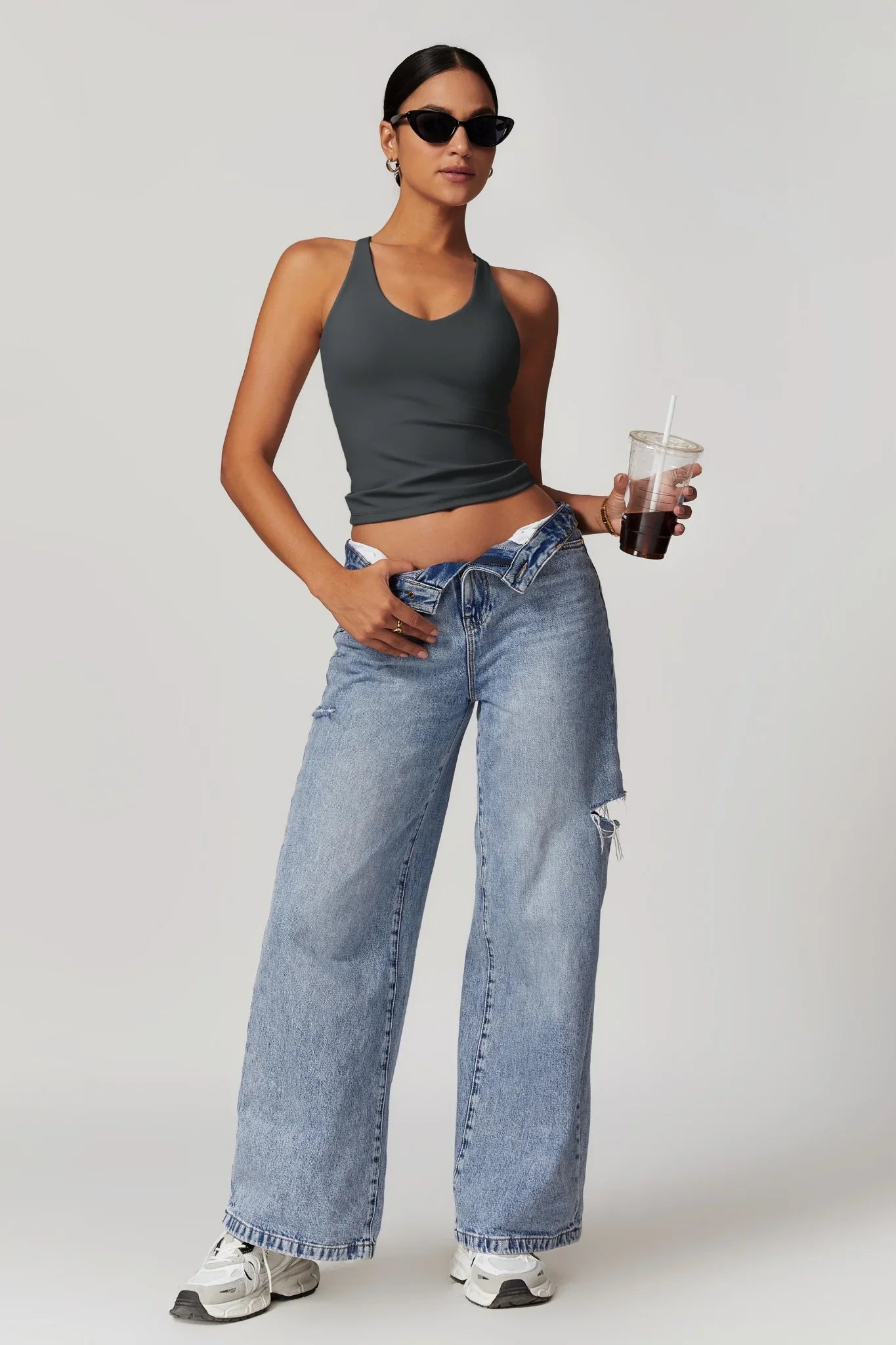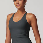 Top NERVE z dekoltem U, regulowanym krzyżowanym ramiączkiem i wbudowanym stanikiem z wyjmowanymi wkładkami. Miękki materiał, oddychający krój i design, który wygląda tak samo dobrze na zajęciach, co na mieście. Twój ruch, Twój styl — NERVE jest gotowy.